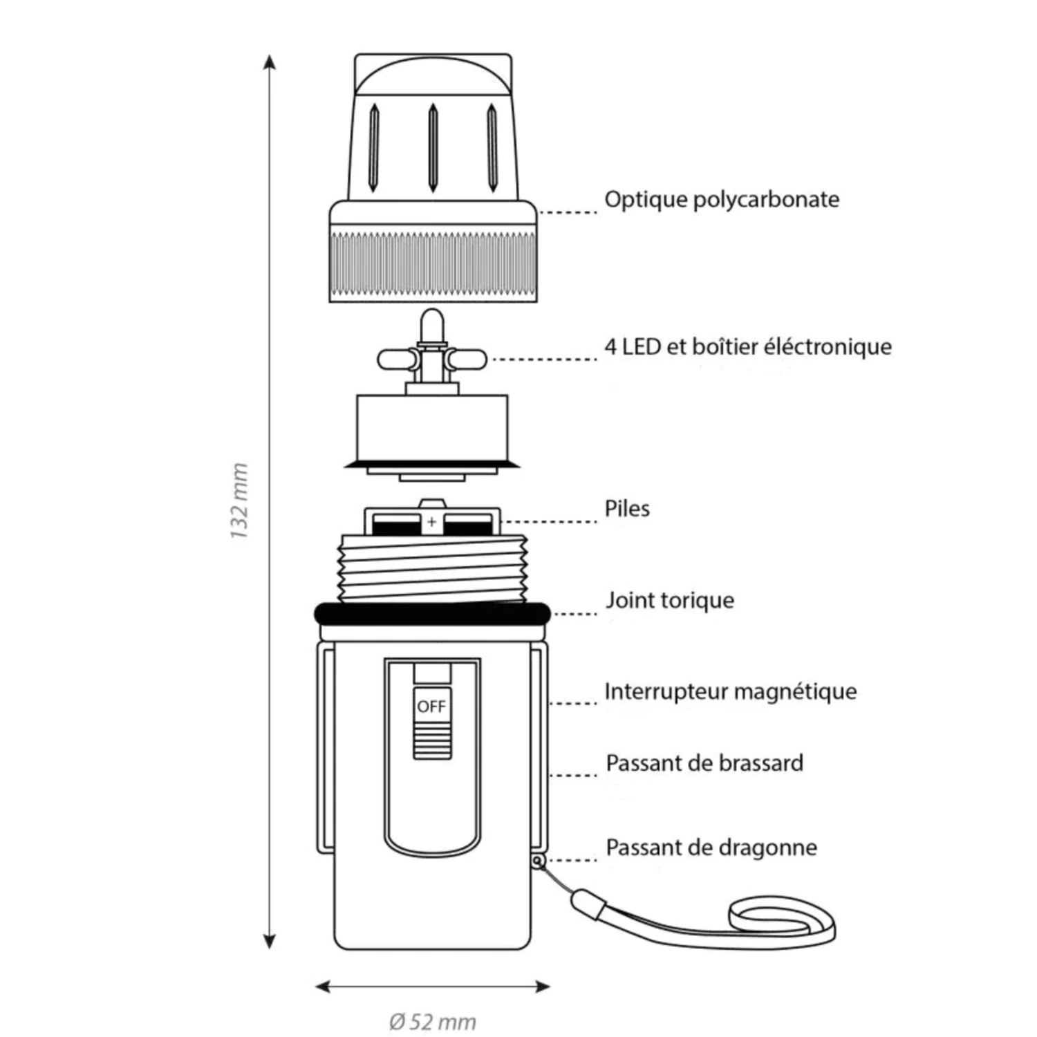 Cette lampe de sécurité à LED est conçue pour les professionnels du nautisme et de la plongée, assurant une visibilité remarquable en mer. Dotée de quatre LED blanches puissantes, elle émet entre 50 et 70 éclats par minute pour une portée de repérage jusqu’à 2 km en conditions normales. Son boîtier en ABS robuste et optique en polycarbonate garantit une résistance aux environnements marins et une étanchéité jusqu'à 100 mètres de profondeur. L'indice de protection IPX7 atteste de sa résistance à l’immersion temporaire (jusqu’à 1 mètre de profondeur pendant 30 minutes), assurant ainsi sa fiabilité dans des situations exigeantes. La lampe fonctionne avec trois piles AA (non fournies) pour une autonomie de 150 heures, optimisée pour une utilisation prolongée. Sa conception compacte et son poids léger facilitent son transport et son utilisation dans des situations d’urgence.