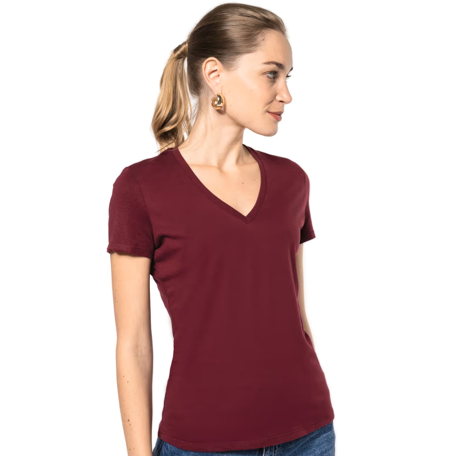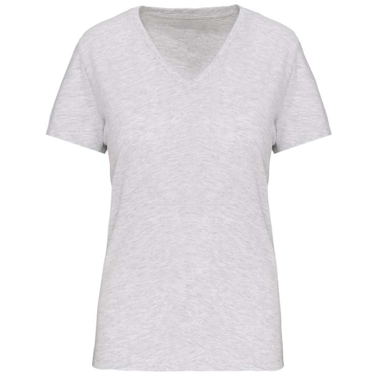 Le tee-shirt bio col V pour femme est conçu à partir de coton en conversion biologique, garantissant une production plus respectueuse de l’environnement. Il offre une légèreté agréable tout en garantissant une bonne tenue. Il est 100 % en coton peigné en conversion biologique. Son encolure en V est renforcée par un bord-côte avec élasthanne, assurant un ajustement confortable. Avec un grammage de 145 g/m², ce tee-shirt allie légèreté et solidité. La finition double aiguille aux manches et à la base du vêtement renforce sa durabilité.