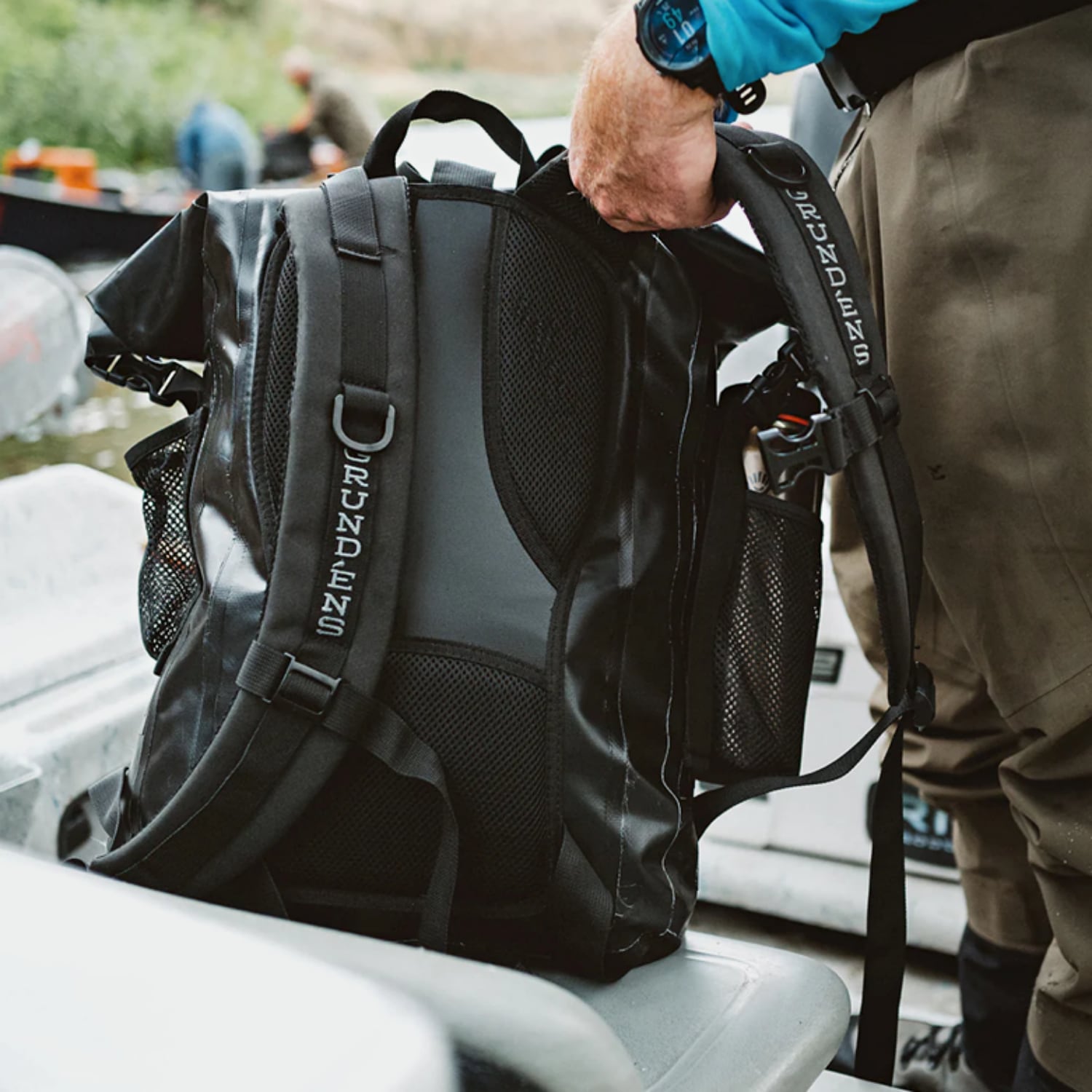 Le sac à dos Rum Runner répond aux exigences des professionnels de la pêche et de l'aventure. Grâce à sa conception étanche, il protège votre matériel de pêche, vos appareils électroniques et autres accessoires sensibles à l'humidité. Sa robustesse, assurée par le PVC 500D et les coutures soudées, en fait un allié fiable dans les conditions les plus difficiles. Les bretelles rembourrées et le renfort en mousse assurent un port confortable, même pour des charges lourdes. La fermeture par enroulement ajoute une sécurité supplémentaire, tandis que les poches externes permettent d'accéder facilement à des objets indispensables comme des bouteilles d’eau.