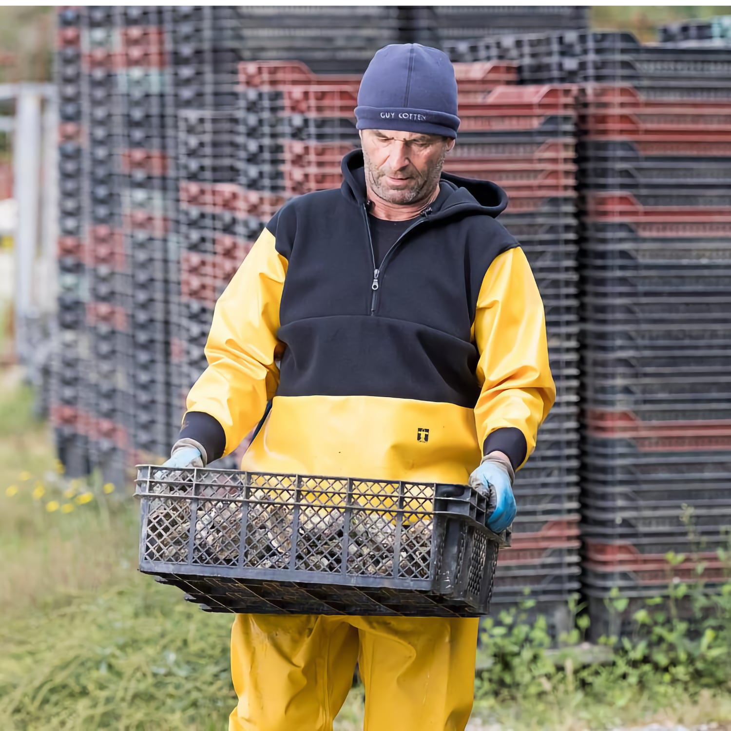 La polaire à capuche et renforts indestructibles par Guy Cotten représente un avantage significatif dans l'équipement professionnel destiné aux environnements froids et humides. Conçue avec l'expertise de la marque, la Sotra se distingue par ses empiècements en ciré élargis, offrant une protection supérieure à celle du modèle Kodiak, reconnu pour sa robustesse. La fusion de la fibre polaire Pol 350g/m² avec des renforts en PVC étanche sur les zones ventrales et les manches crée un vêtement à la fois chaud, agréable à porter et résolument imperméable. Les poignets en néoprène, la grande capuche ajustable et les poches chauffe-mains illustrent l'attention portée au confort et à la fonctionnalité, essentiels pour les professionnels de la pêche et du mareyage.