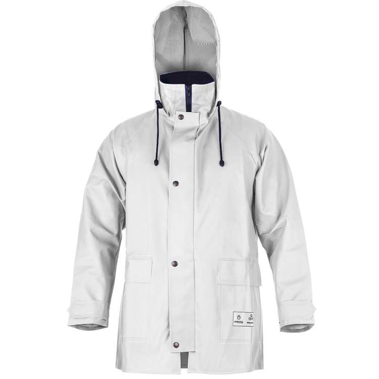 La veste ciré est conçue pour offrir une protection fiable contre la pluie et le vent dans les environnements professionnels exigeants. Fabriquée en tissu Plavitex Classic, elle bénéficie d'une enduction PVC sur support polyester, garantissant une étanchéité totale et une résistance aux déchirures. Avec un grammage de 350 g/m² et une épaisseur de 0,48 mm, elle assure une durabilité supérieure, même dans des conditions extrêmes. La veste intègre une capuche ajustable par cordon, un col montant doublé polaire, ainsi que deux poches équipées de rabats de protection. Son système de fermeture à glissière sous rabat à boutons-pression empêche efficacement les infiltrations d'eau, tandis que la ventilation dorsale optimise la circulation de l'air pour éviter l'accumulation d'humidité.