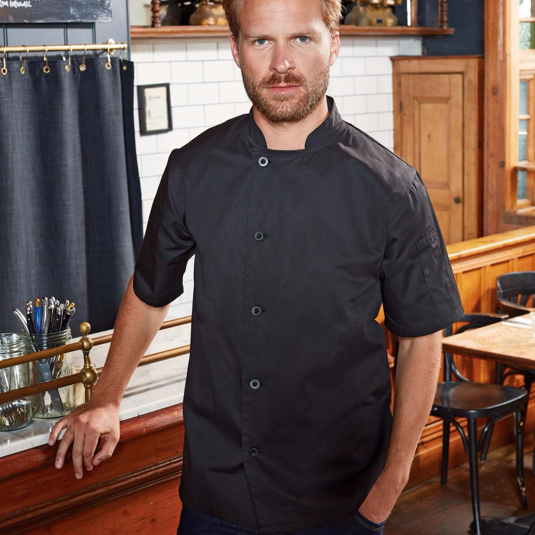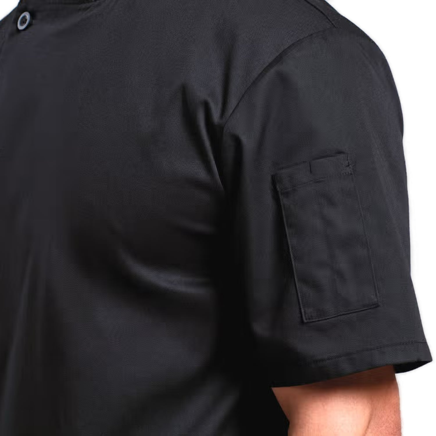 La veste de travail à manches courte Essential est conçue pour répondre aux besoins des professionnels exerçant dans des secteurs exigeants, tels que les métiers de bouche, notamment la poissonnerie, la charcuterie ou la restauration. Son tissage sergé, souple et robuste, associe 65 % de polyester et 35 % de coton pour offrir un bon équilibre entre résistance à l’usure et confort thermique. Ce tissu léger de 170 g/m² permet une bonne respirabilité tout en restant solide face aux lavages répétés. La fermeture latérale sur le buste se fait par cinq boutons en résine, choisis pour leur résistance à la chaleur et aux agents chimiques. Le col mandarin fermé limite les risques d’accrochage et assure une tenue propre. Une double poche à stylo est intégrée sur la manche gauche pour faciliter l’accès aux instruments d’écriture ou de contrôle, un détail apprécié dans les milieux techniques.